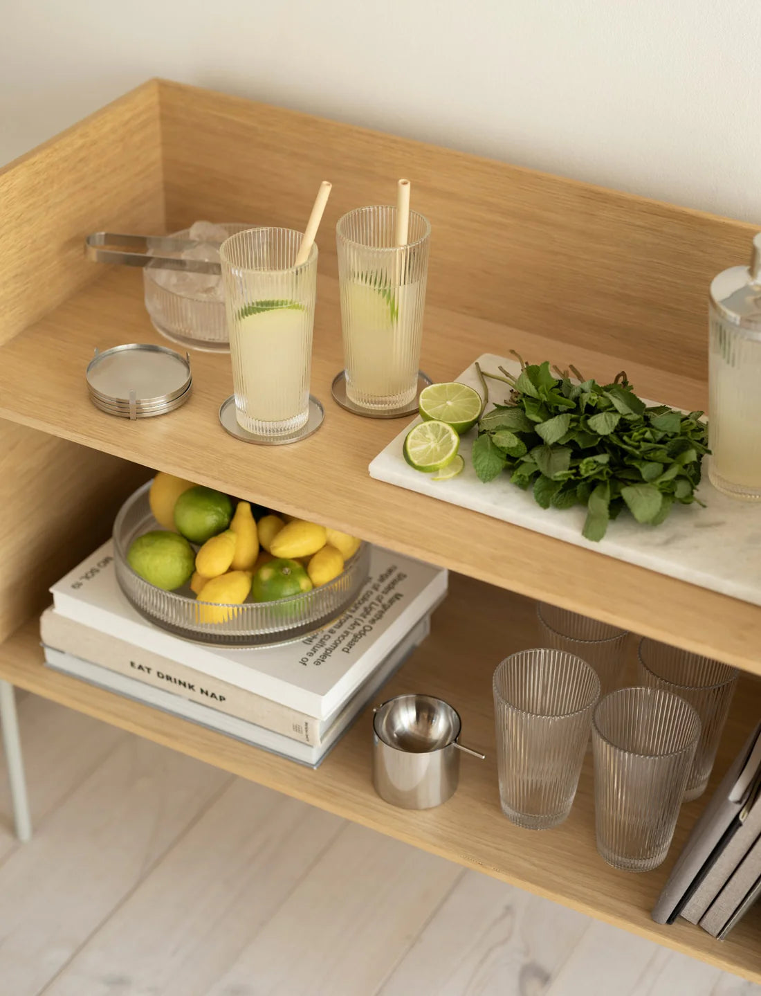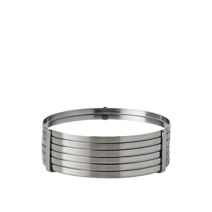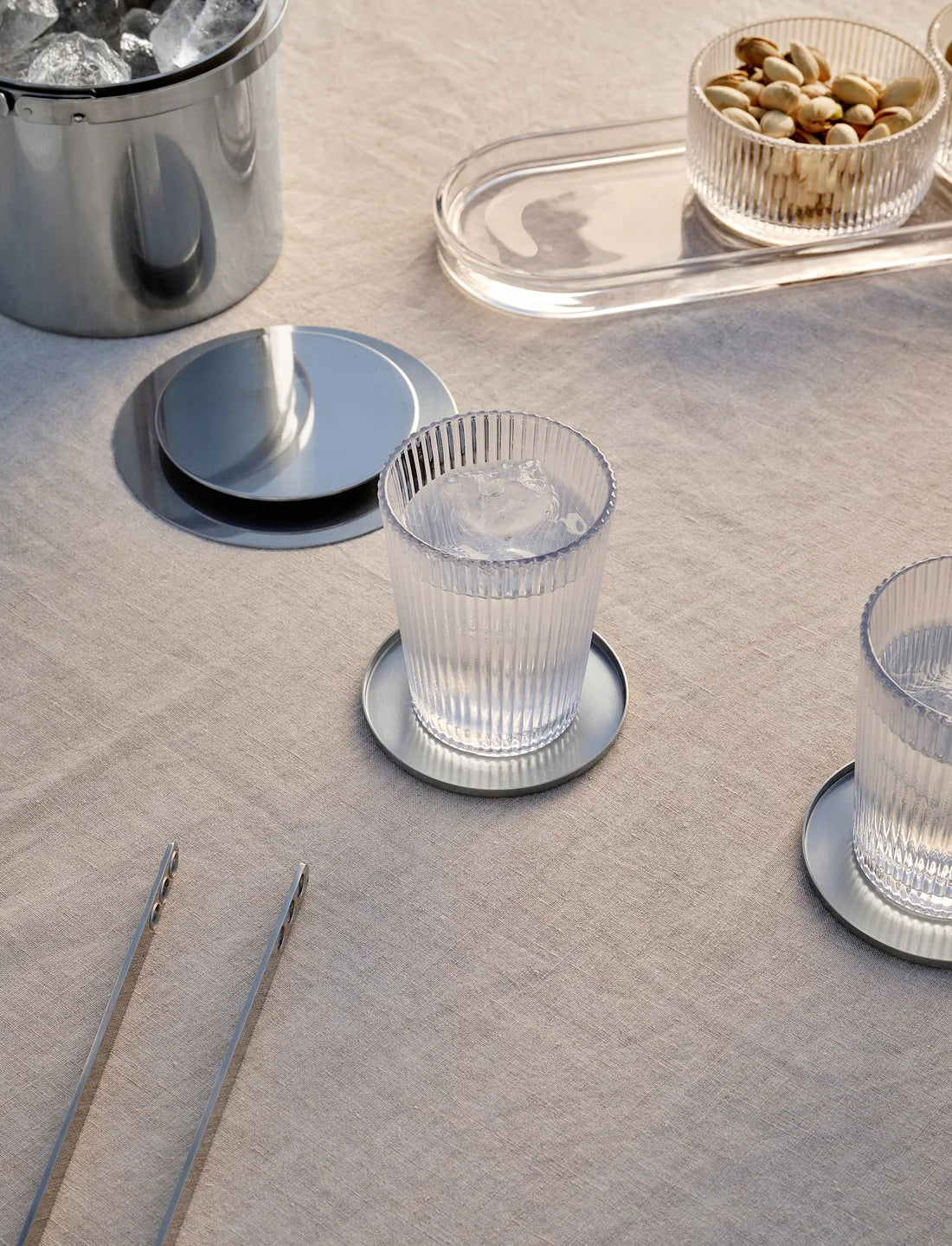 Designed by iconic Danish architect and designer Arne Jacobsen, this set of six cylindrical glass coasters transforms a simple necessity into a refined design statement. Crafted from sleek stainless steel, each 8.5 cm coaster delivers cool, architectural elegance while protecting your surfaces from drips, condensation, and unwanted glass rings.