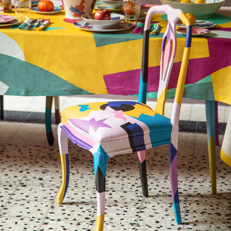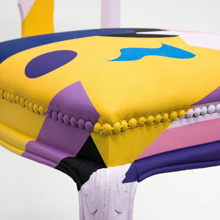 For the exhibition "In the Belly of the Warrior," curated by Sara Ricciardi to honor Italian design master Alessandro Guerriero, Vito Nesta commissioned four hand-painted chairs from the Alchimie collection. These restored vintage chairs showcase four of the six designs featured throughout the collection, craftsmanship, these chairs represent the perfect blend of design and art. Custom designs can be recreated on different chairs upon request