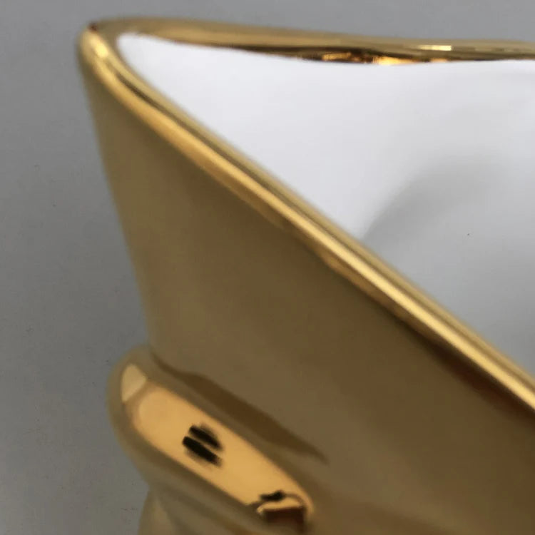Crafted in honor of the traditional Bauta mask worn during Carnevale in Venice, the carafe can be displayed upside down when not in use. The white terracotta carafe is coated in white enamel and a glossy brass finish before the final firing. For both hot and cold beverages, the carafe can be personalized with a short sentence on the bottom.