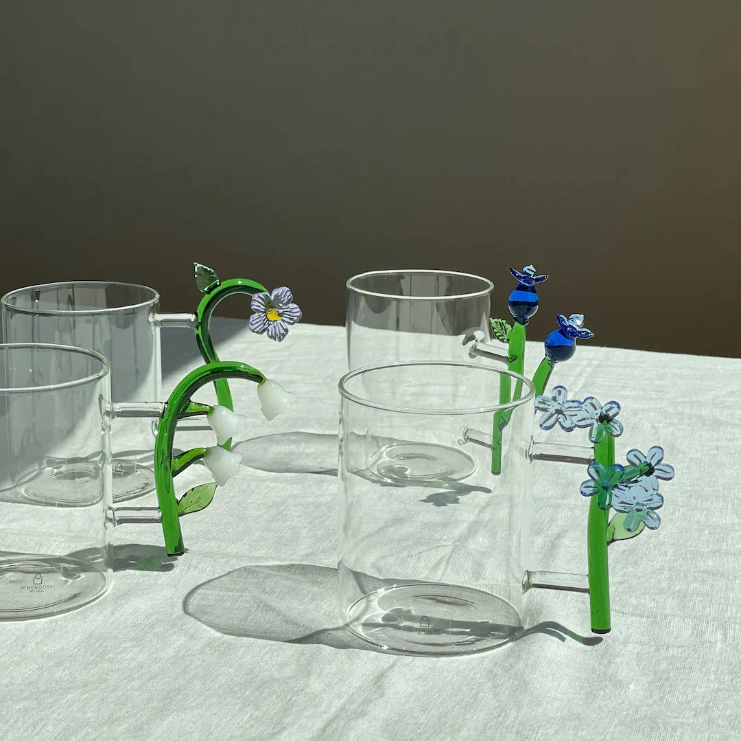 The Ichendorf Botanica mug flower is like holding a spring garden between your palms. Its soft blue hue reflects the poetry of dawn, while the delicately shaped flower within the glass opens with every sip. Each mug seems to capture a moment of natural calm, transforming coffee or tea into a serene, sensory ritual where transparency meets imagination.