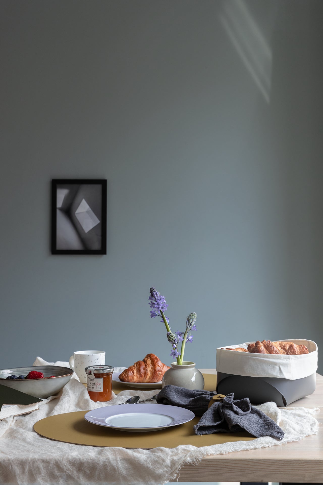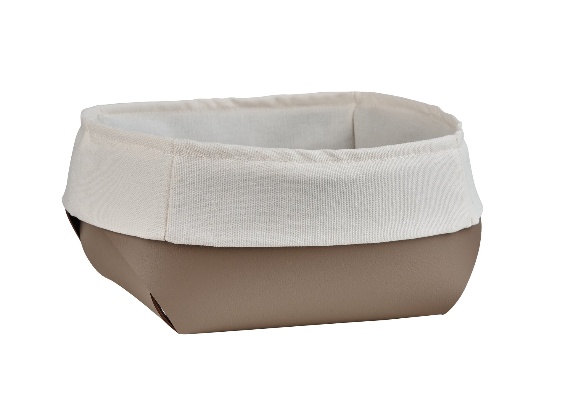 A stylish bread basket made from recycled leather that adds warmth and personality to your kitchen. It comes with a practical cotton storage bag that is machine washable, ensuring perfect hygiene and keeping your baked goods fresh.
