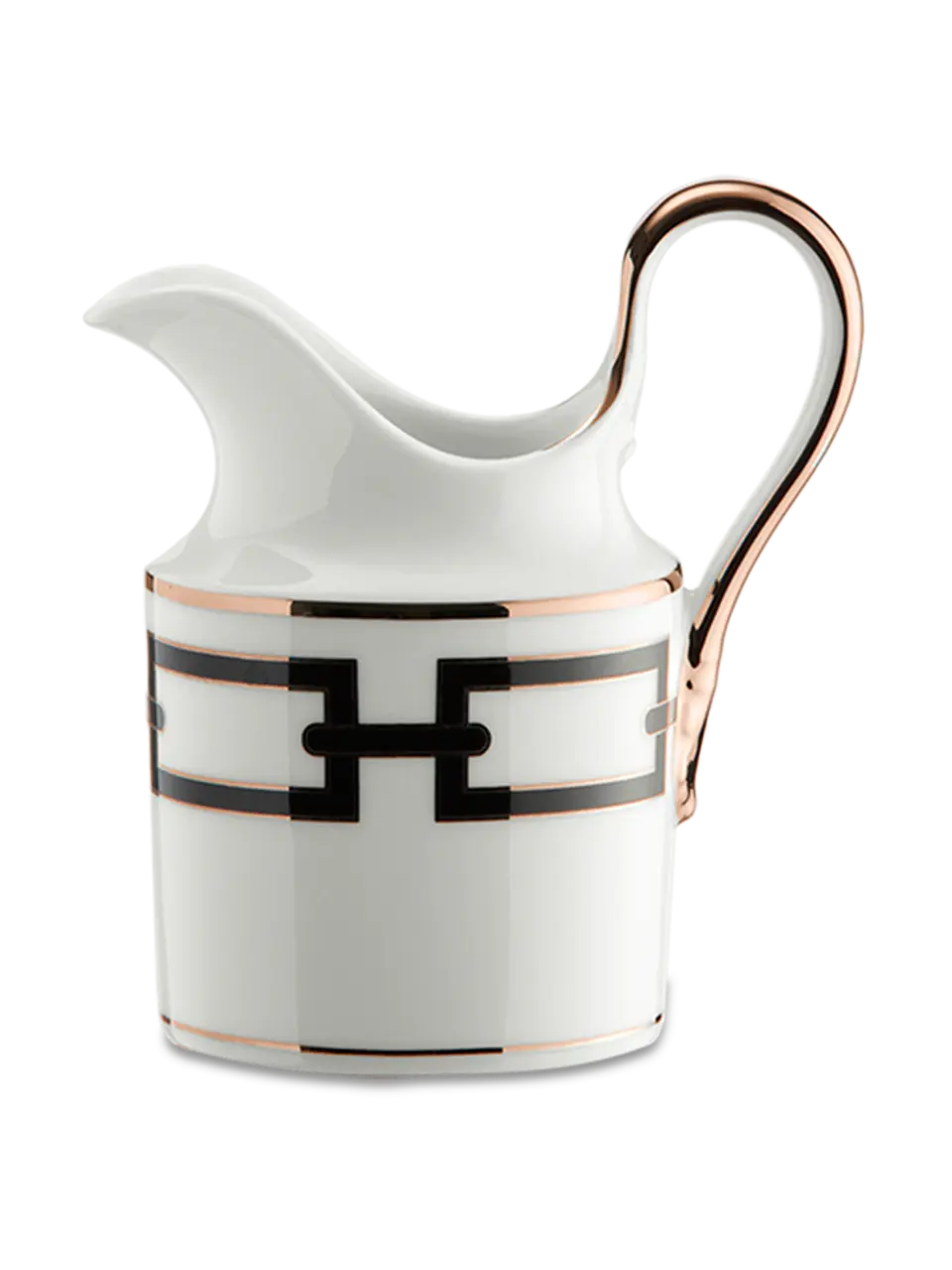 Experience a unique and personalized tea or coffee style with Catene Nero Milk Jug by Ginori 1735. The unmistakable gorgeous style of Florentine Maison combines with the Impero shape that defines line as an expression of beauty in Ginori’s originality and savoir faire. A refined mise en place, the delicate hand painted black geometric design elevates the whiteness of white, finished with gold rims, making the milk jug a must-have for those who enjoy luxury tea time, at home or outside.
