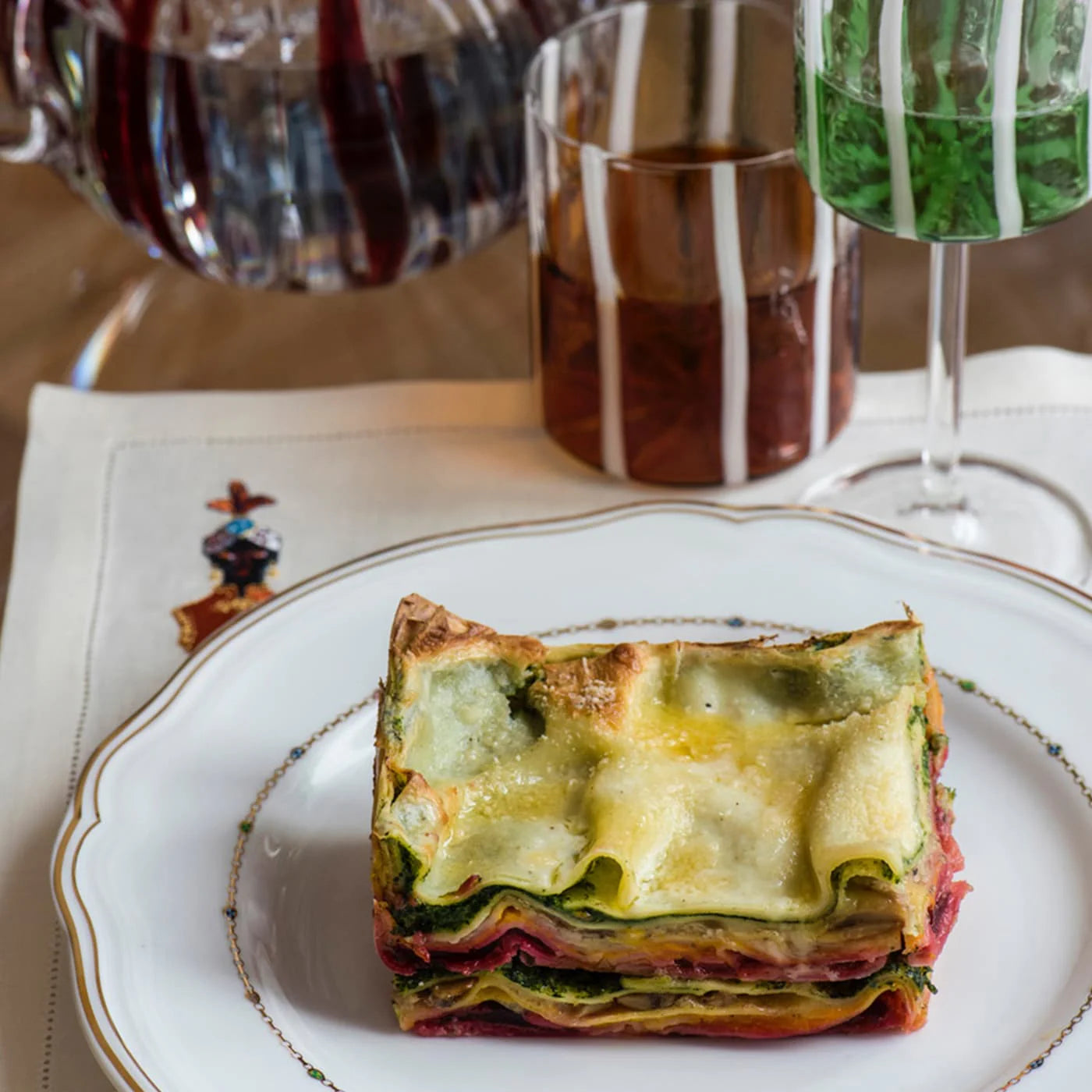 The 'Mezzo e Mezzo' drinking glass celebrates Bassano del Grappa's historic aperitivo through the masterful combination of colored glass. Joined through the Incàlmo technique, these colored drinking glasses celebrate all the playfulness around the aperitif ritual that distinguishes the people of Veneto. Eventually decorated with colored glass rods, these glasses are the perfect choice to add a touch of sparkle to your table setting.