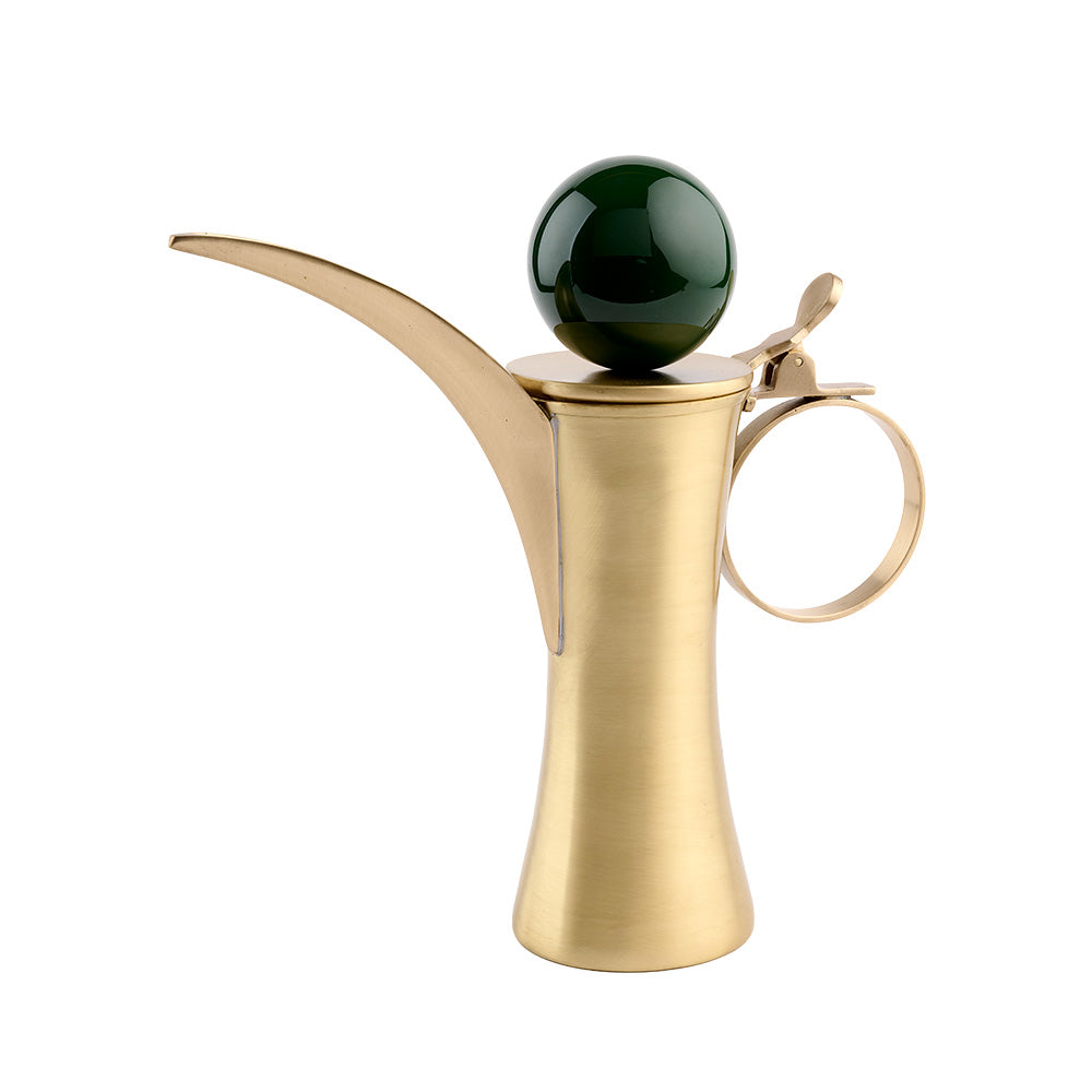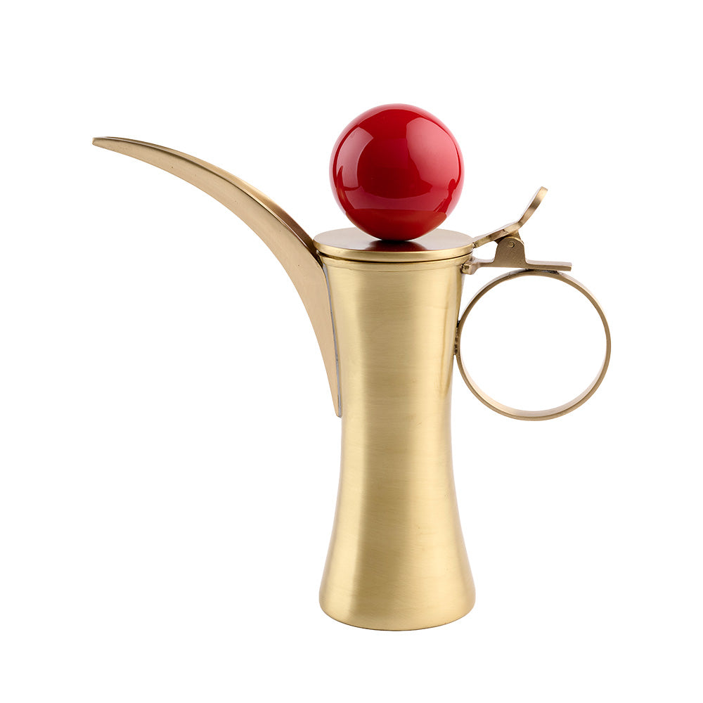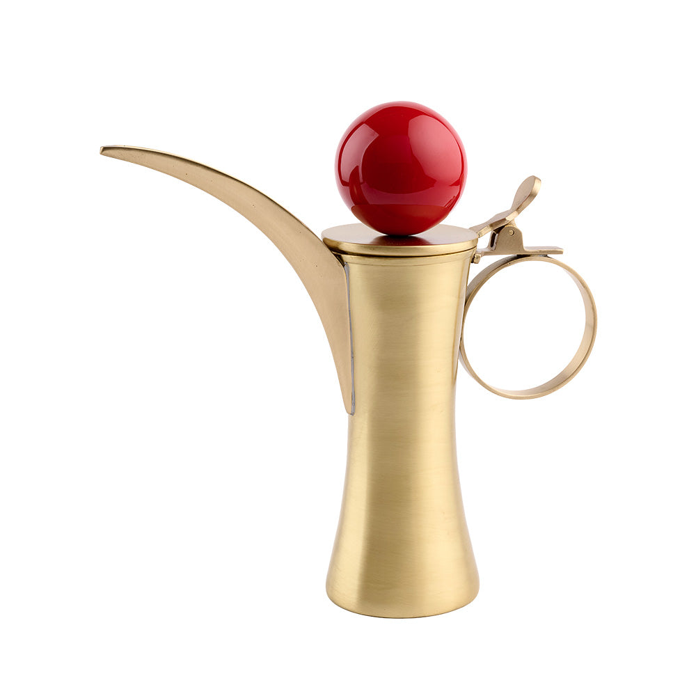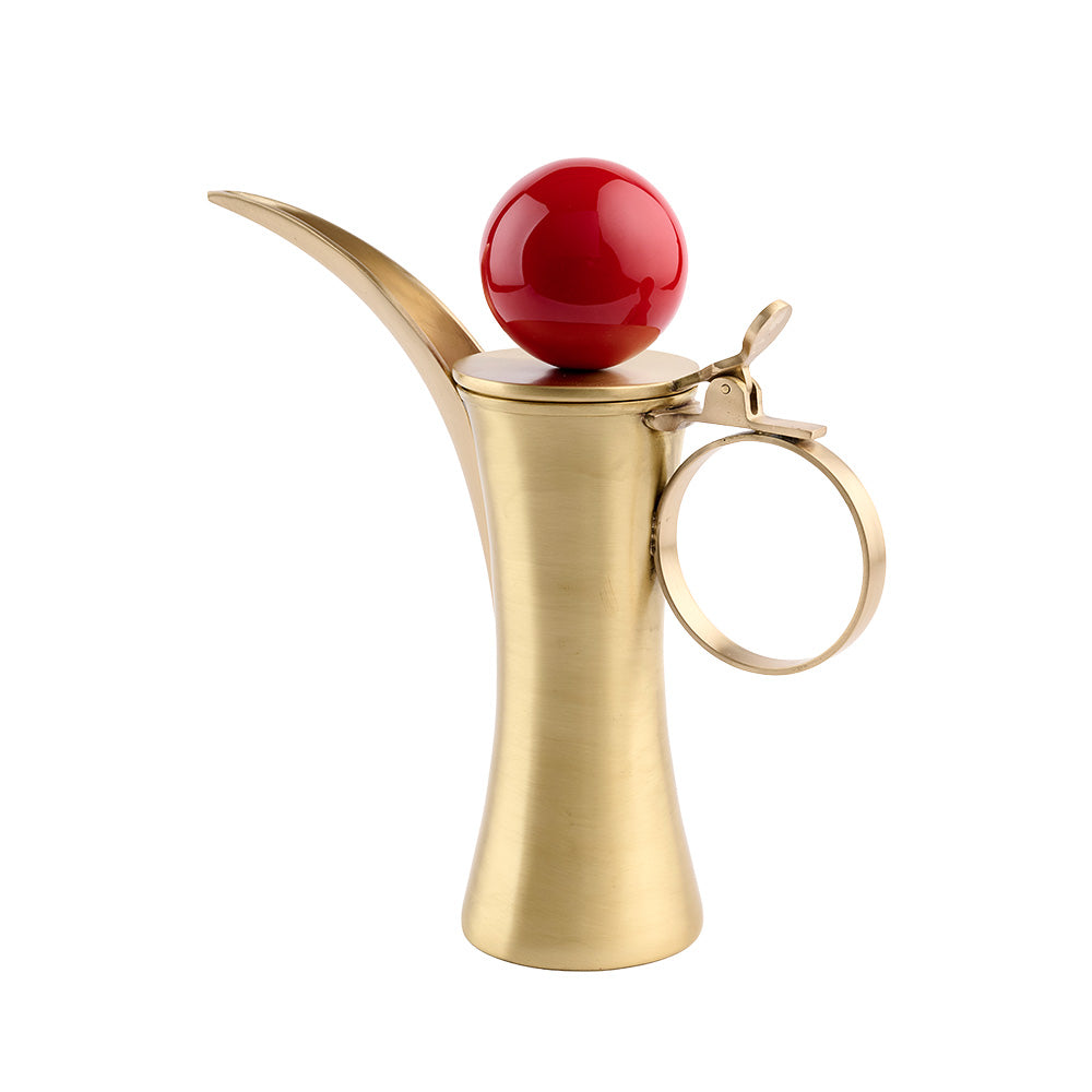 Named ‘Farah’ for the joy it brings, this Dallah blends tradition with modern joy. Crafted from brass and topped with a vibrant Red colored sphere, it’s designed for serving hot liquids. With its sculptural silhouette and playful details, the Farah Dallah brings warmth, style, and personality to any setting.