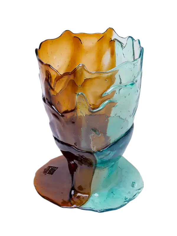 The Twins C Vase in aqua and brown is a striking balance of cool and earthy tones. Its sculptural form highlights the contrast between freshness and warmth, making it both artistic and versatile. Perfect as a centerpiece or decorative accent, it brings contemporary elegance with a touch of bold character to any space.