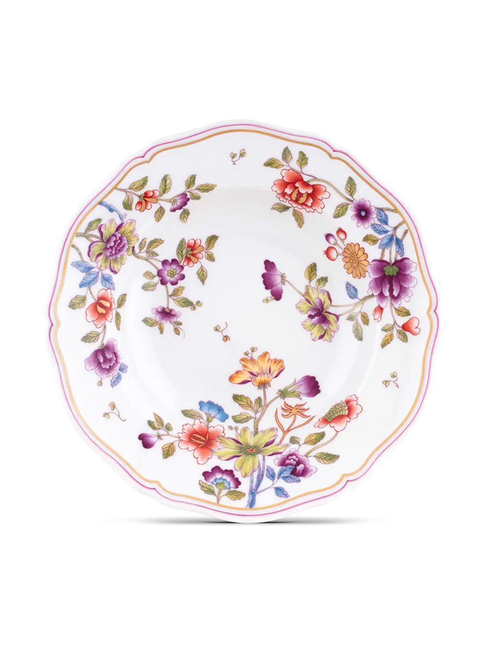 The best of Ginori's works squeeze into Granduca Coreana Soup Plate. Characterizing the famous alla Coreana motif design, the plate is inspired by the passion of Florentine noblewomen for decoupage and the textures of imperial kimono. Adorning elegant peony, the symbol of happiness, the design showcases gold threading, a distinctive signature of the florentine manufacturer. Bringing tradition and design to your table setting, the Italian craftsmanship pairs with the oriental fashion to complete your moments with good vibes.