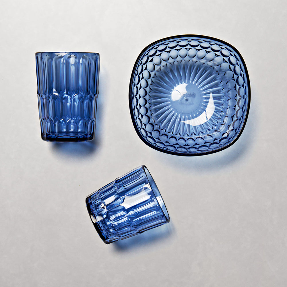 Crafted from Bio-based acrylic crystal, a renewable, organic, non-fossil material derived from vegetable waste, 100% recyclable and BPA-free.