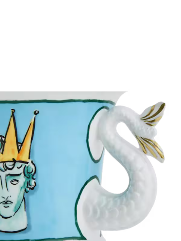 The label brings Il Viaggio Di Nettuno Mediceo Vase With Mermaid Tails. An exclusive article for Il Viaggio di Nettuno collection, its mesmerizing gold rim and mermaid tail handle art is designed by Luke Edward Hall. Inspired by Greco-Roman mythology, the vase makes a beautiful statement piece in your home for entrance, table or bookshelf.