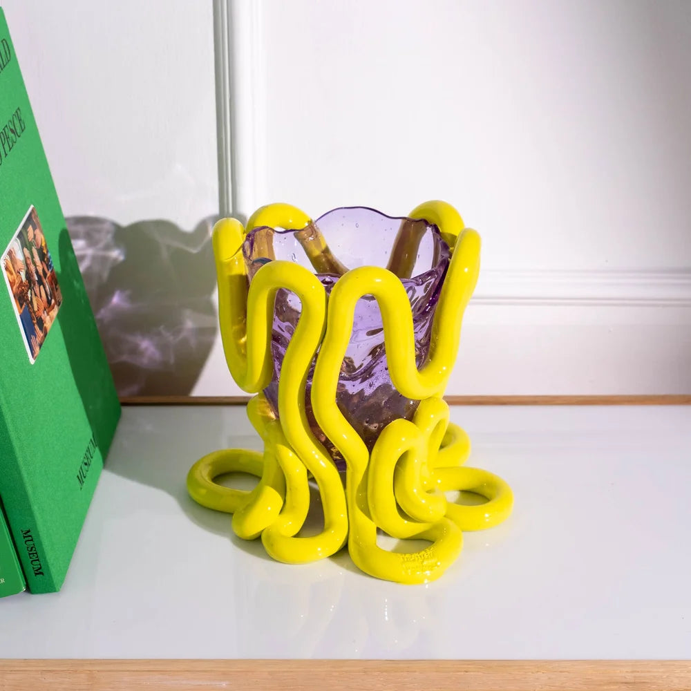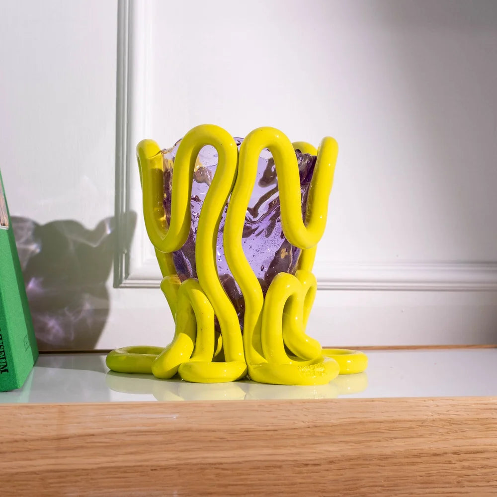 Indian Summer Vase - Clear Lilac And Matt Fluo Yellow