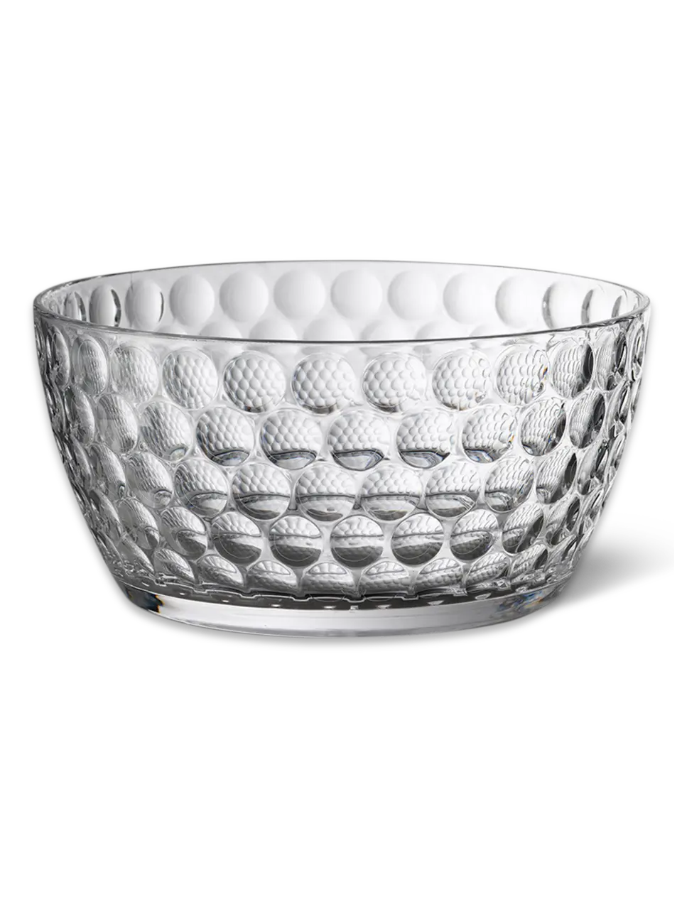 Add a touch of sophistication to your table setting with the Mario Luca Giusti Peterich Lente Salad Bowl. Crafted from durable acrylic, this bowl seamlessly transitions from indoor elegance to outdoor gatherings. Inspired by the cut Bohemian glass of the 20th Century, its 'Lens' pattern creates a captivating optical effect. Reminiscent of vintage designs, these bowls marry timeless elegance with modern durability, making them suitable for any occasion, from formal dinners to casual barbecues.