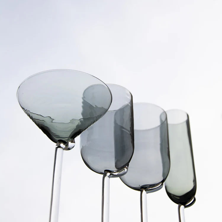 The Vatussi collection brings to life the modern interpretation of blown glass, where the artisanal touch is highlighted by the curved stem in which the glass cup lays. Classy and elegant, this tall White Wine Goblet elevates any toast to a unique and unforgettable moment.