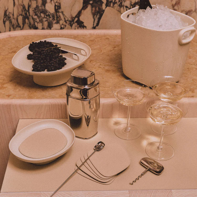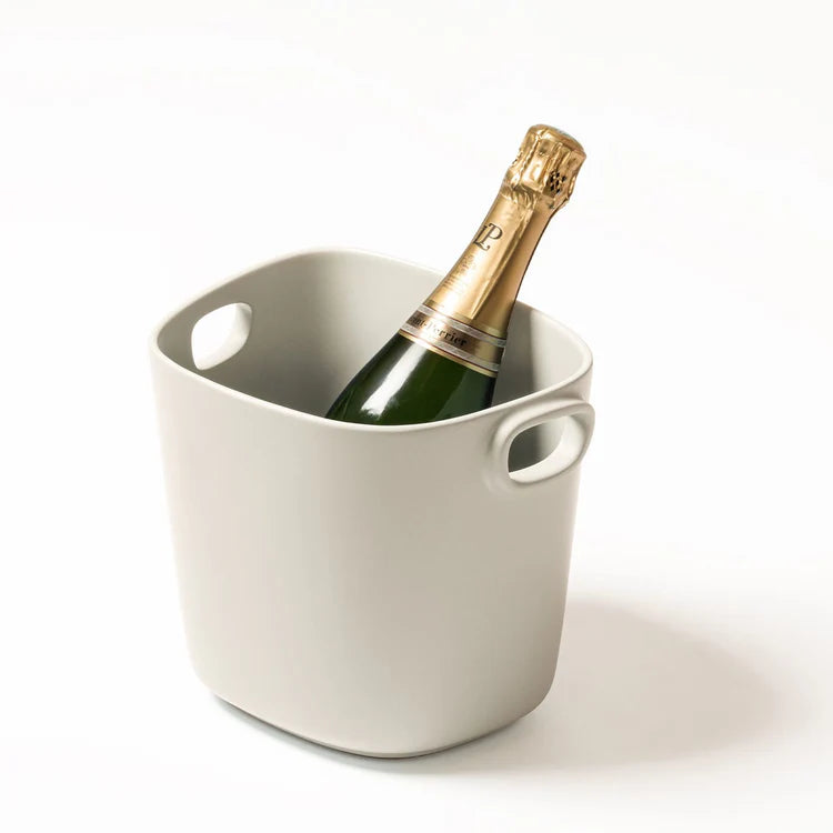 Elevate the art of entertaining with the Maris champagne bucket, designed for a single bottle. This sumptuous piece embodies the elegance and versatility intrinsic to the Maris collection by Kelly Wearstler for Giobagnara. Drawing inspiration from the serene beauty of coastal environments, the design features smooth, organic shapes reminiscent of nature's artistry, such as pebbles caressed by ocean waves. Crafted with a sandblasted aluminium structure, this champagne bucket's minimalist aesthetic seamlessly integrates into various settings while providing a striking focal point. The thoughtfully designed handles ensure effortless mobility, making it an ideal companion for both lavish gatherings and intimate moments. Designed to complement a range of decor styles, its timeless allure is sure to enhance any occasion. This exquisite bucket epitomizes sophistication, transforming the simple act of serving champagne into an indulgent experience.
