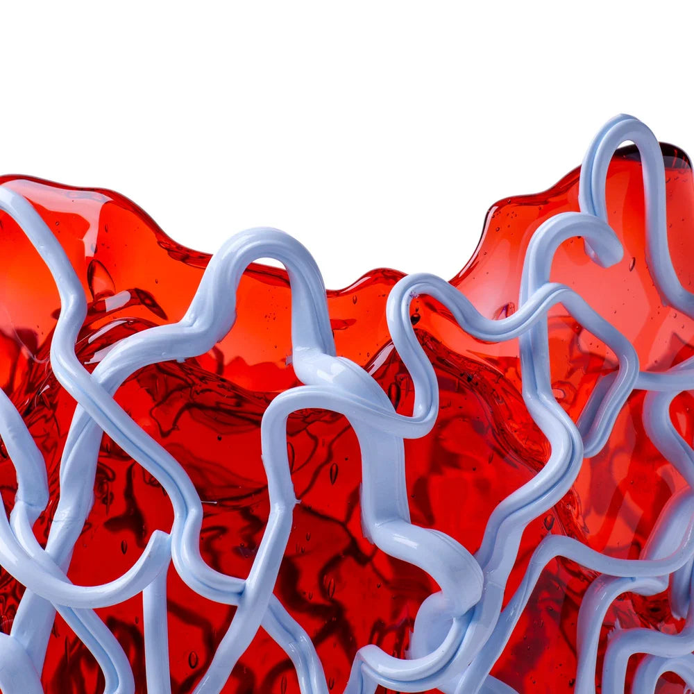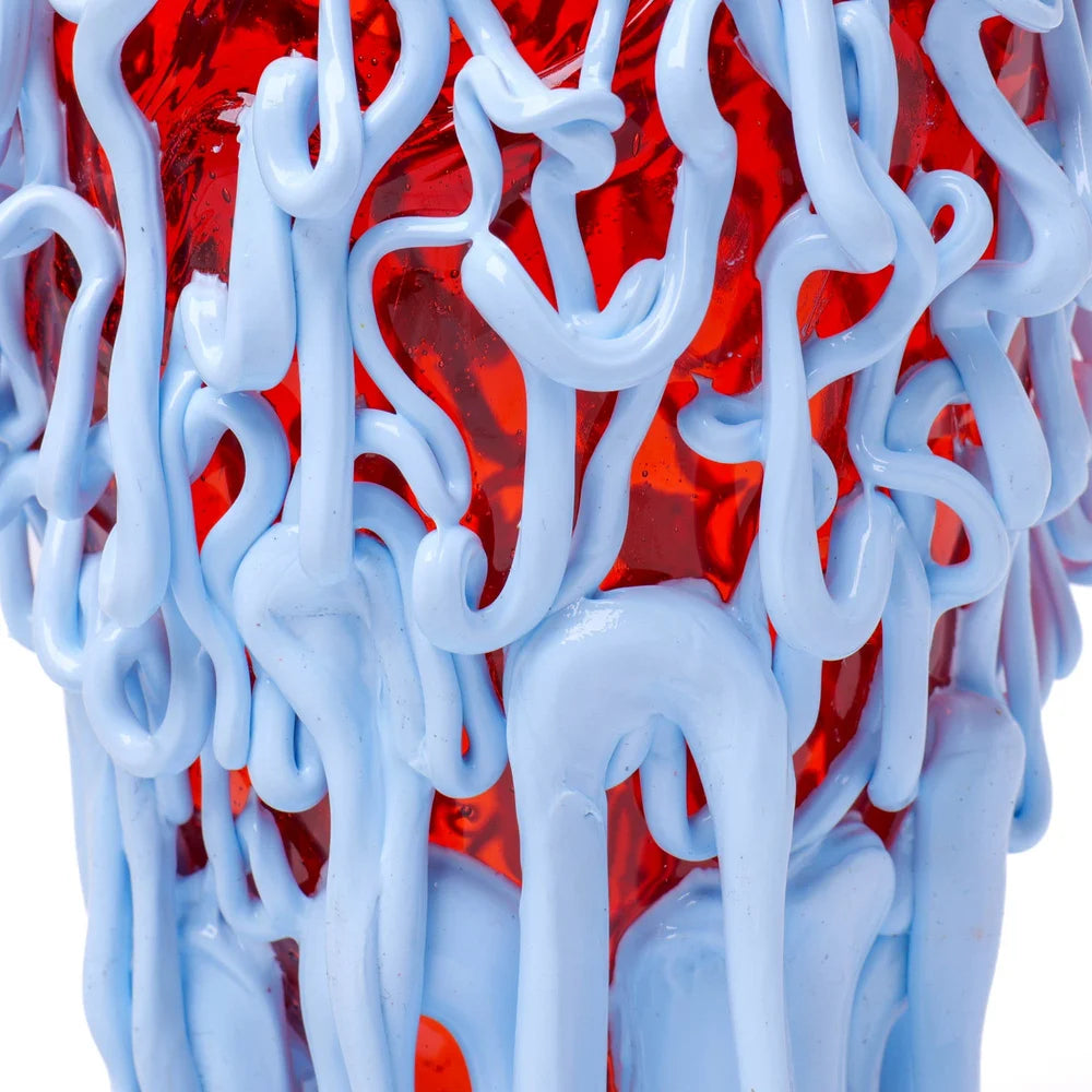 Medusa Vase - Clear Dark Ruby And Matt Pastel Blue