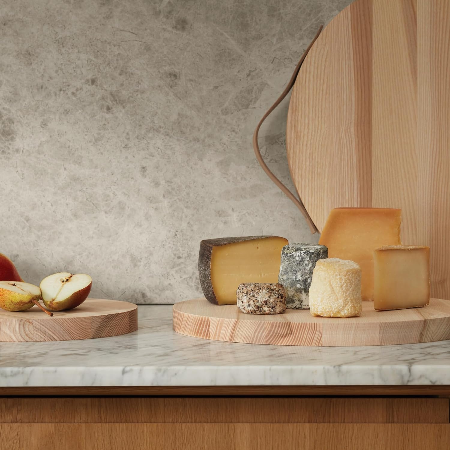 W114-01-350 Utility Board Ash & Leather Handle Ø35cm