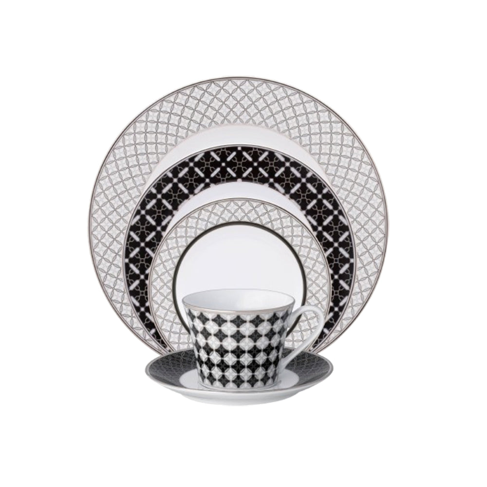 Drawing on the quiet luxury of Art Deco design, the City Table Collection by Noritake features intricate, lace-like geometric patterns that evoke the elegance of delicate silver and gold work. With its bold black, white, and metallic finishes, this set creates a stunning visual statement, transforming any gathering into a truly special occasion.