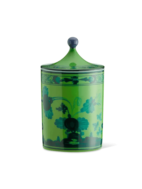 Immerse yourself in the captivating ambience created by the Ginori 1735 Oriente Italiano Malachite Candle with Cover. As its flame flickers, it releases a mesmerizing fragrance that envelops your space for approximately 60 hours, creating an inviting and soothing atmosphere. Even after the wax has been consumed, this candle continues to enchant as a unique and stylish home accessory, adorning your living space with a touch of elegance. One noteworthy detail is the delicate flower motif that graces the porcelain surface, a reinterpretation of the stylized "carnation" flower from the ceramic tradition of Faenza. The exquisite design stands out against the backdrop of the Malachite, capturing attention and evoking a sense of timeless beauty. With aromatic top notes, floral fruity middle notes, and woody base notes, this candle offers a multi-layered olfactory experience that captivates the senses. The Ginori 1735 Oriente Italiano Malachite Candle With Cover is more than a source of fragrance; it is a piece of art that enhances the ambiance of your space, enveloping you in a world of beauty and serenity.