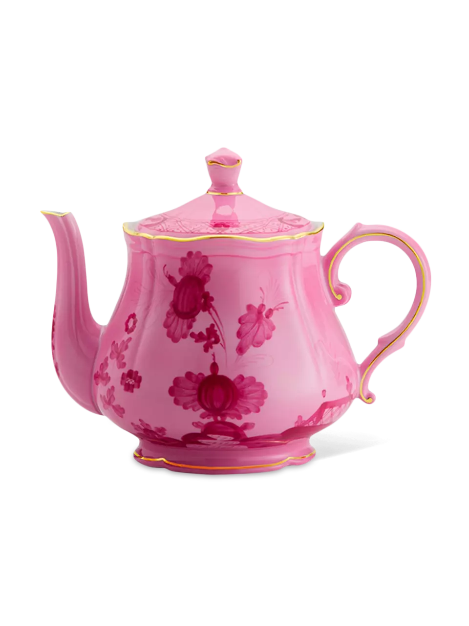 Bring an air of exotic zeitgeist to your table with GINORI 1735's Oriente Italiano Porpora Teapot with Cover. Its evocative floral decorations infuse it with Far Eastern charm and make it the perfect centerpiece for your table. Impress your guests with its beauty and elegance and make them feel like they are on an extraordinary journey with each sip.