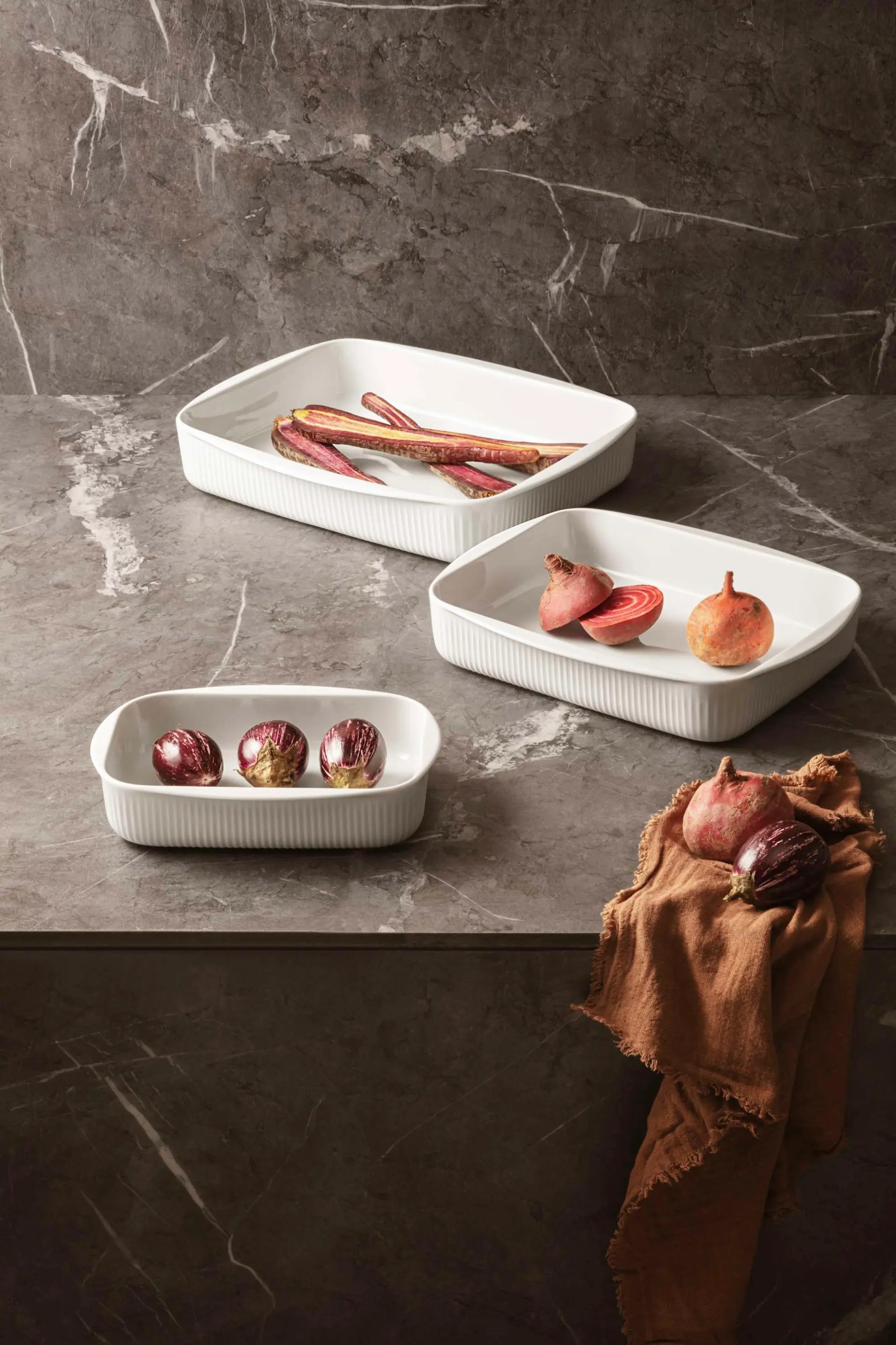 This ovenproof dish with the fluted Legio Nova decoration adds a decorative element to the table, and can be used for a wide range of applications – from baked and barbecue dishes to fruit and salad.
