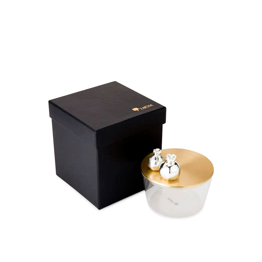 - Topped with a lid with silver 3D Pomegranate Ornaments