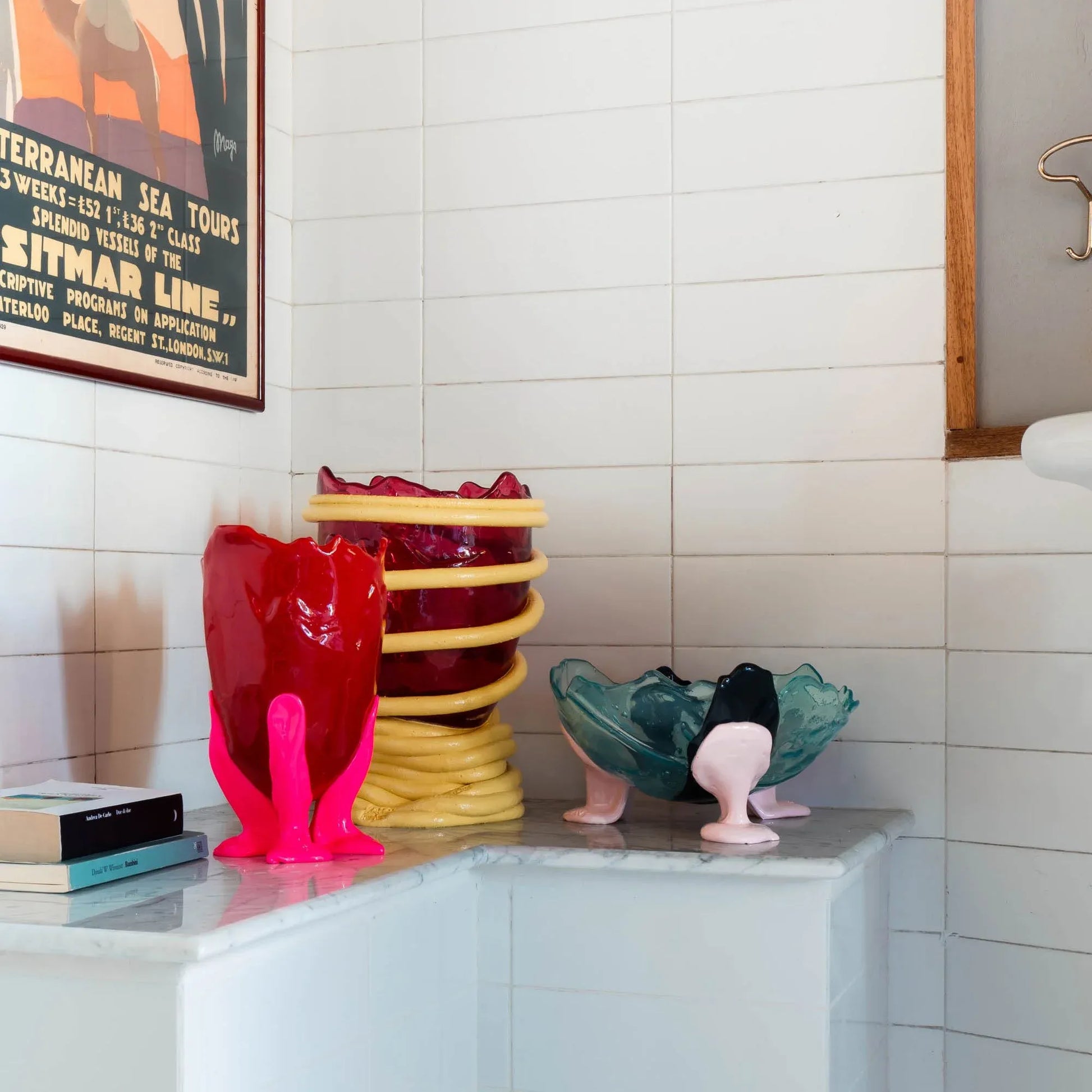 Pompitu I Vase - Clear Fuchsia, Pastel Yellow