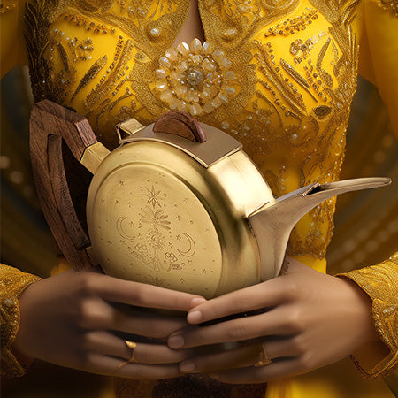 Add elegance to every pour with this handcrafted brass dallah etched with the iconic Palm design of the Nouri Collection. Featuring a sleek matte finish, a striking round shape, and a dramatically long spout, it’s the perfect blend of style and functionality. The solid wooden handle ensures comfort, while the 800ml capacity is ideal for tea, coffee, or any beverage.