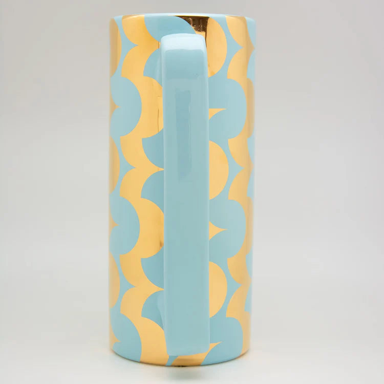 A glimpse of the playful sketchbook of a young Carlo Guazzo. This Serlio 24 K Gold collection is inspired by the architect's notebook drawings. Handthrown in white terracotta, the stunning Serlio Carafe is a beautiful example of fine Italian craftsmanship. When missing some ideas, he used to activate his creativity by playing with portions of circles, resulting in vivid patterns. Fired multiple times, the Serlio 24 K Gold is a result of the traditional 'Terzo Fuoco' technique.