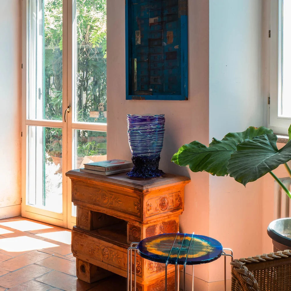 Spaghetti Vase - Clear Aqua, Purple