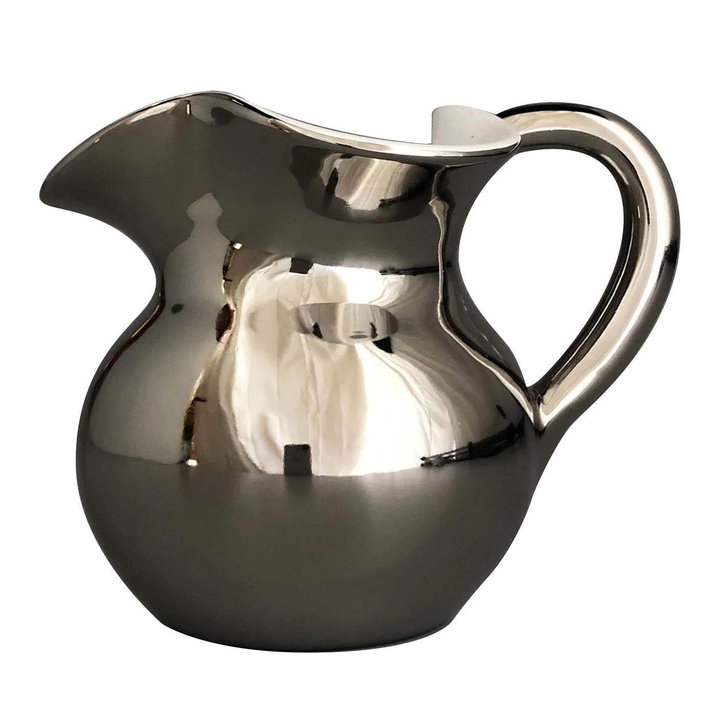 The stunning Torcello Carafe is inspired by the shape of the Venetian tricorn hat. Handturned in white terracotta with palladium-colored finish using a soft bristle brush, the 1.2 L carafes are uniquely shaped by hand and also offer the option of customizing with a brief text on the underside of the item.