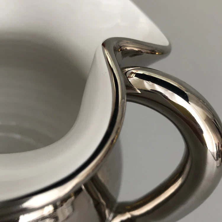 The Torcello Carafe is a fine example of elegant and original craftsmanship. Handturned in white terracotta and uniquely shaped by hand, the 1.2 L carafe is finished in a gold glaze applied using a soft bristle brush. The item may be customized with a short piece of text on the underside.